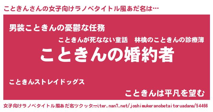 | 意味不明あだ名 | 『こときんフォーエバー』『自称こときん』 |