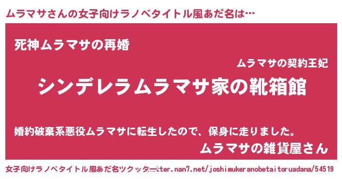 | 男性向けラノベタイトル風あだ名 | 『冴えないムラマサの育てかた』 |