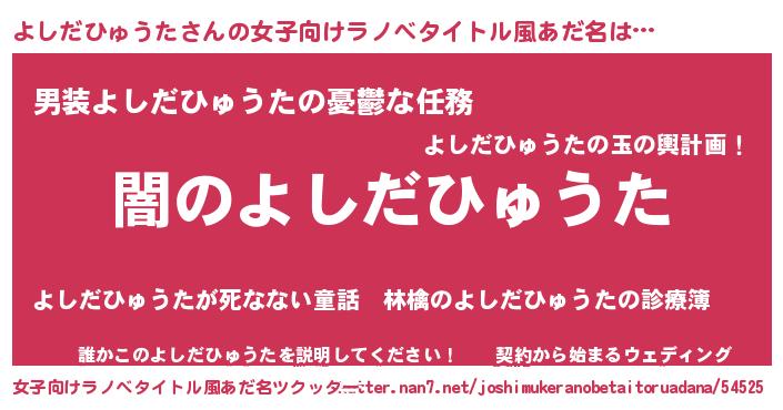 | 男性向けラノベタイトル風あだ名 | 『Re:よしだひゅうたから始める異世界生活』 |