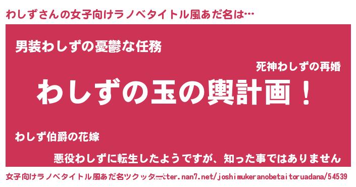 | 胡散臭い通販商品みたいなあだ名 | 『世界中を虜にした100年もののヴィンテージワイン…その名も「わしず」』 |