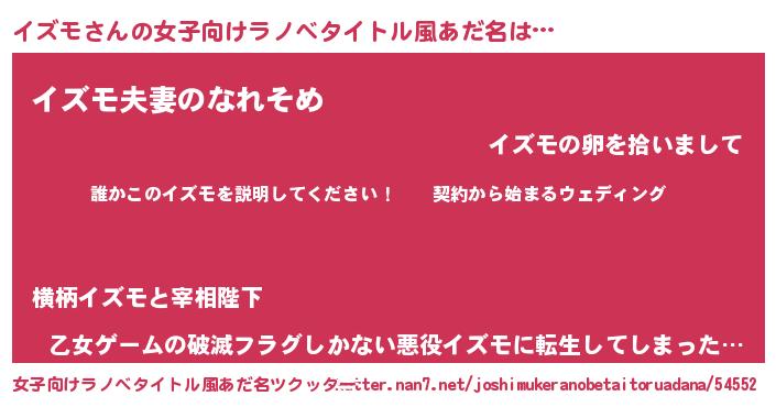 | 男性向けラノベタイトル風あだ名 | 『イズモアートオンライン』 |