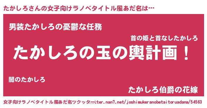 | 胡散臭い通販商品みたいなあだ名 | 『運命の人と巡り会える高級そうな絵画…その名も「たかしろ」』 |