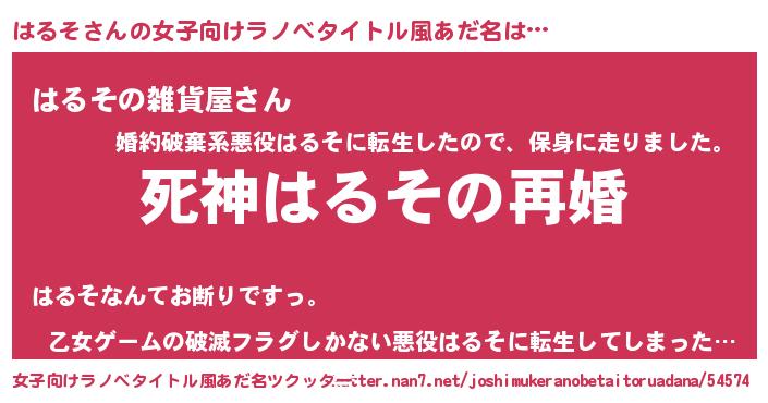 | 男性向けラノベタイトル風あだ名 | 『ノーゲーム・ノーハルソ』 |