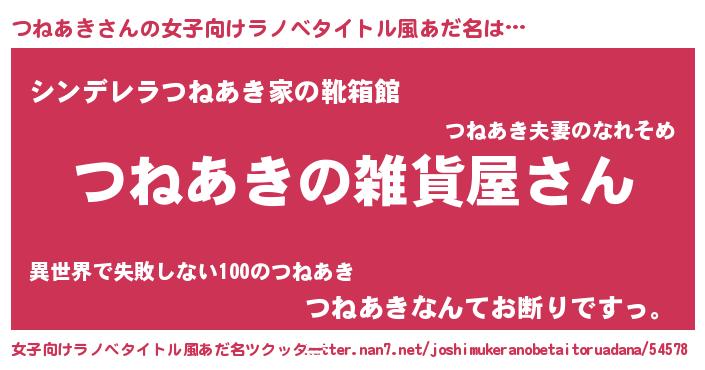 | 男性向けラノベタイトル風あだ名 | 『やはりつねあきの青春ラブコメはまちがっている 』 |