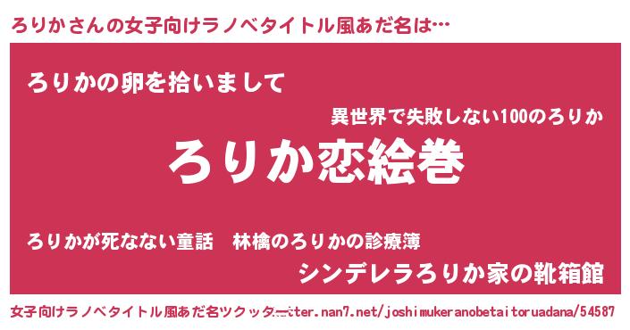 | 男性向けラノベタイトル風あだ名 | 『おまえをオタクにしてやるから、俺をろりかにしてくれ! 』 |