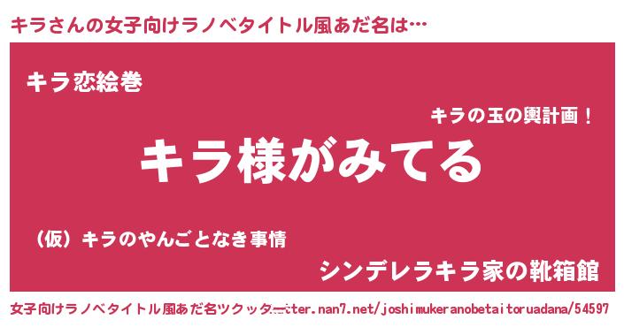 | 男性向けラノベタイトル風あだ名 | 『キラの嫁は女の子じゃないと思った?』 |