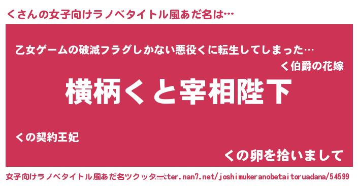 | 男性向けラノベタイトル風あだ名 | 『くに滅ぼされるだけの簡単なお仕事です』 |