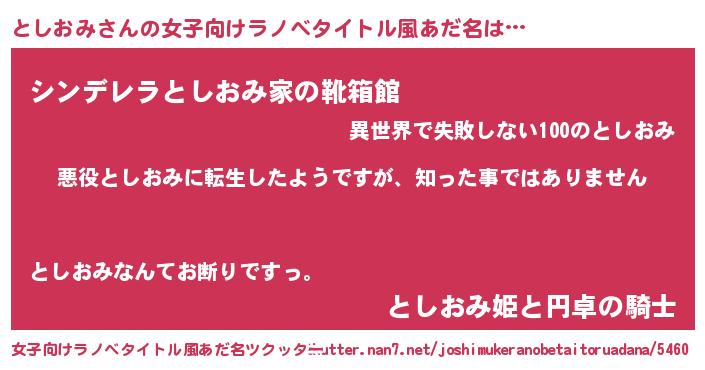 | 胡散臭い通販商品みたいなあだ名 | 『あなたにだけ特別に提供する限定10本のレアな日本酒…その名も「としおみ」』 |