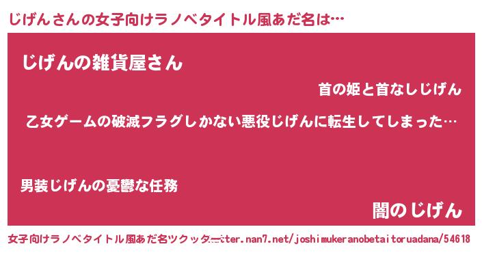 | ヒーロー風カッコイイあだ名 | 『仮面ジゲダー』『ウルトラじげんマン』 |