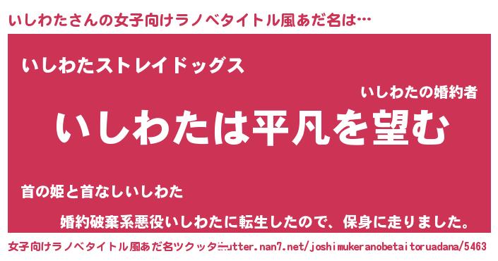 | 胡散臭い通販商品みたいなあだ名 | 『信頼と実績のサプリメント…その名も「いしわた」』 |