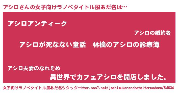 | 男性向けラノベタイトル風あだ名 | 『魔弾の王とアシロ』 |