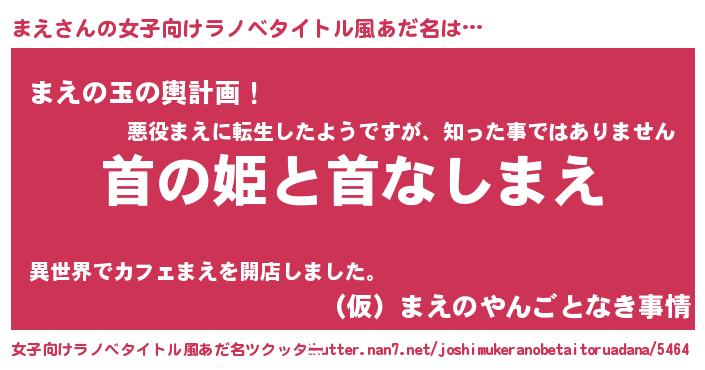 | 男性向けラノベタイトル風あだ名 | 『はたらくまえさま!』『まえの憂鬱』 |