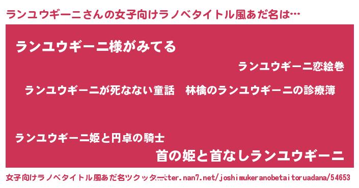 | 意味不明あだ名 | 『住所不定無職ランユウギーニ(84歳)』 |