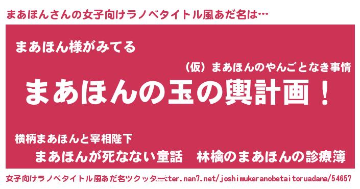 | 男性向けラノベタイトル風あだ名 | 『まあほん~年齢イコール彼女いない歴の魔法使い~』 |