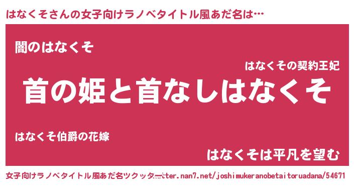 | ファンタジー風あだ名 | 『ゼハナトゥ』『ファントムハナス』 |