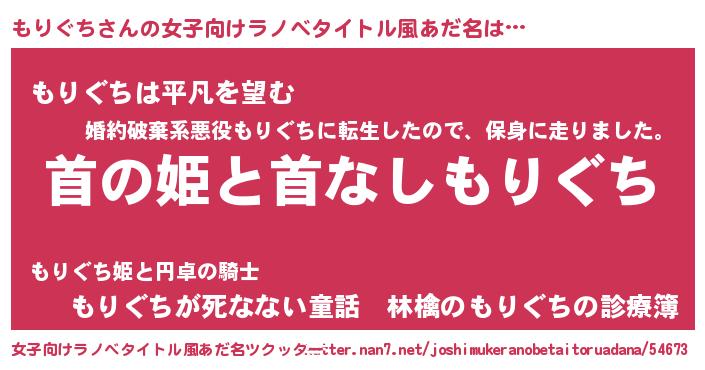 | 胡散臭い通販商品みたいなあだ名 | 『信頼と実績のネックレス…その名も「もりぐち」』 |