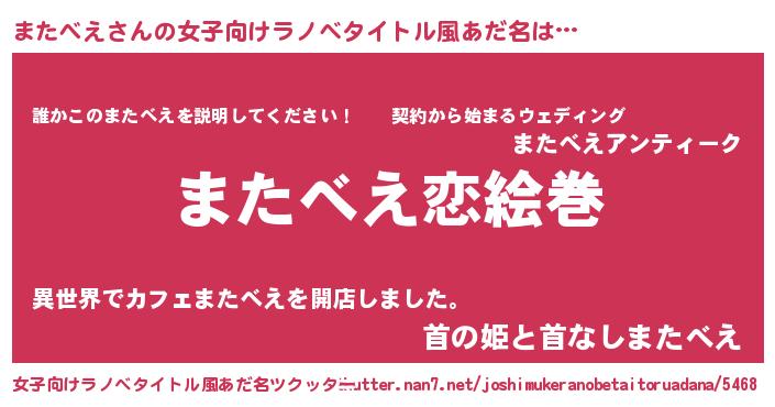 | 男性向けラノベタイトル風あだ名 | 『ノーゲーム・ノーマタベエ』 |