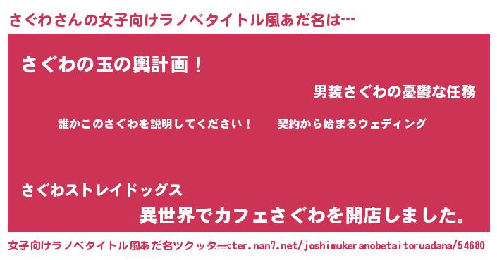 | 男性向けラノベタイトル風あだ名 | 『サグワアートオンライン』 |