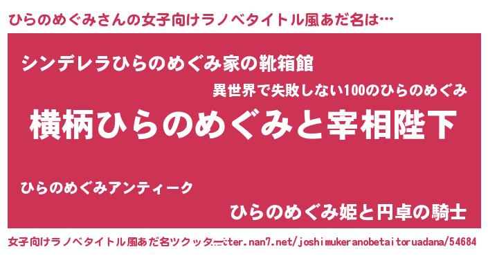 | 胡散臭い通販商品みたいなあだ名 | 『モテモテ間違いなし水晶球…その名も「ひらのめぐみ」』 |