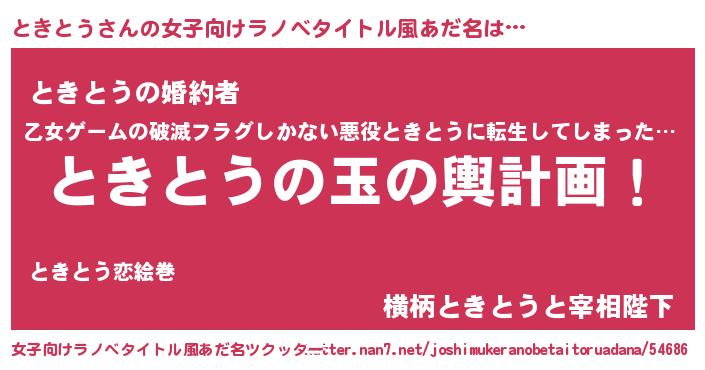 | 男性向けラノベタイトル風あだ名 | 『ときとう~年齢イコール彼女いない歴の魔法使い~』 |