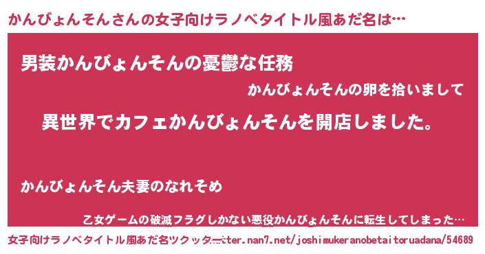 | 男性向けラノベタイトル風あだ名 | 『誰もが恐れるあのかんびょんそんが、ぼくの専属メイドになるようです。』 |