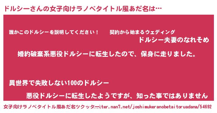 | 男性向けラノベタイトル風あだ名 | 『転生したらドルシーだった件』 |
