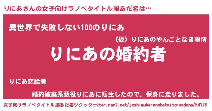 | 肩書あだ名 | 『りにあ国家主席』『りにあ担任』 |