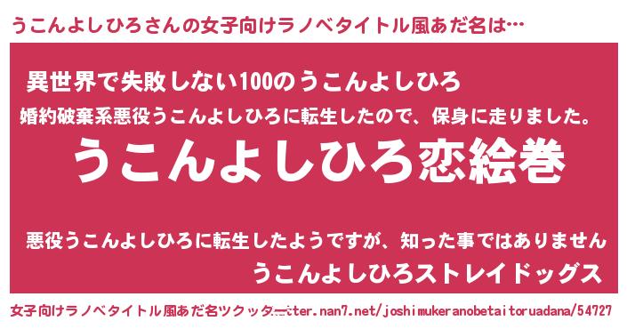 | 肩書あだ名 | 『うこんよしひろ助手』 |