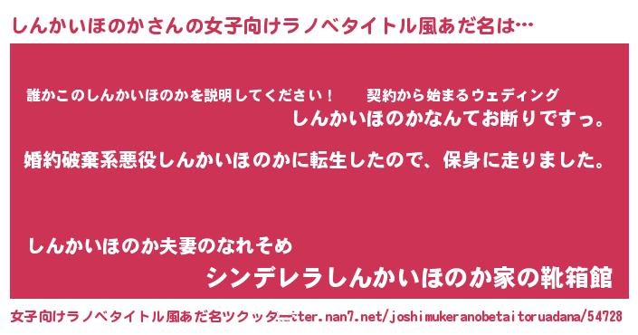 | 男性向けラノベタイトル風あだ名 | 『転生したらしんかいほのかだった件』 |