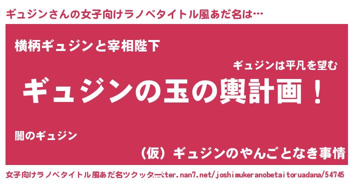 | 男性向けラノベタイトル風あだ名 | 『ギュジン~年齢イコール彼女いない歴の魔法使い~』 |