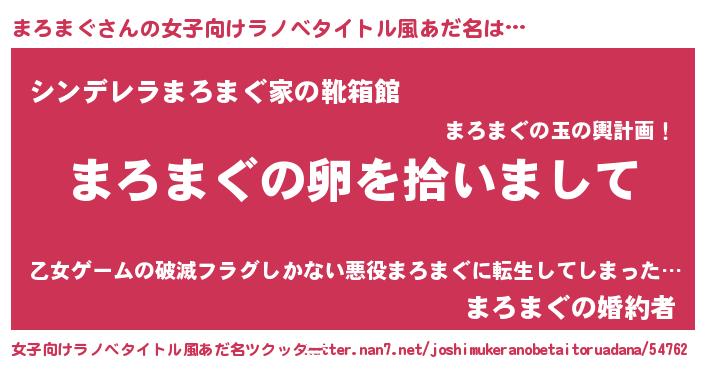 | 男性向けラノベタイトル風あだ名 | 『まろまぐの嫁は女の子じゃないと思った?』 |