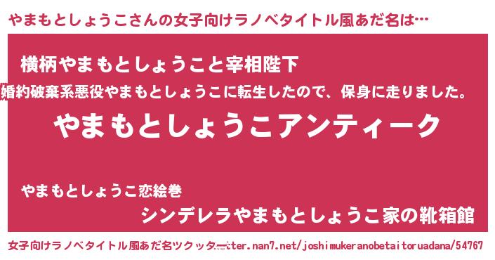 | 肩書あだ名 | 『やまもとしょうこ閣下』 |