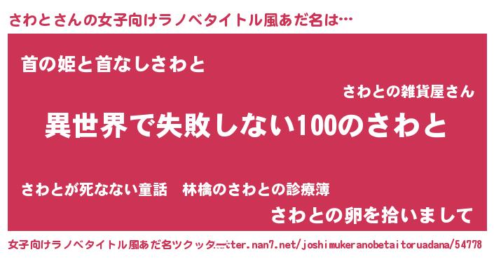 | ヘコむあだ名 | 『さわと(遠い目)』『さわを』 |