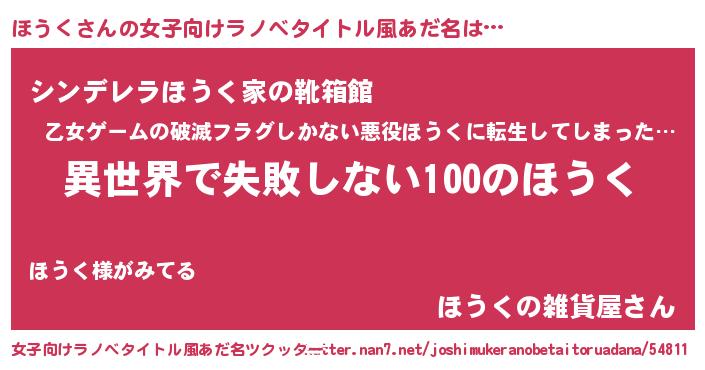 | 男性向けラノベタイトル風あだ名 | 『ほうくという概念が存在しない退屈な世界 』 |