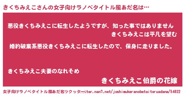 | 肩書あだ名 | 『きくちみえこ少将』『きくちみえこ教官』 |