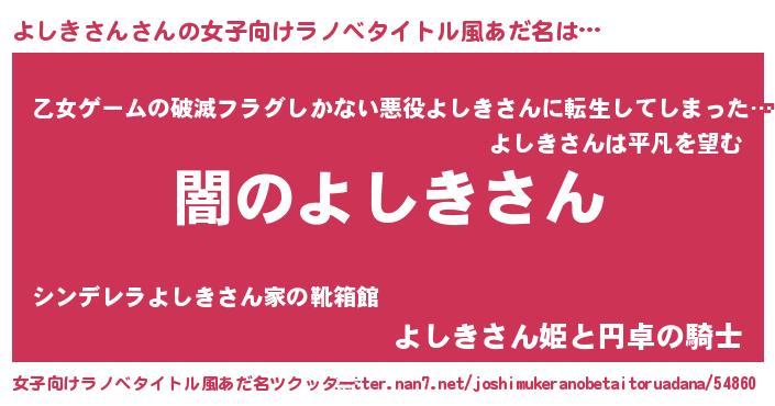 | 男性向けラノベタイトル風あだ名 | 『Re:よしきさんから始める異世界生活』 |