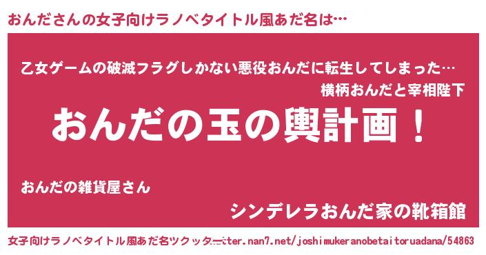 | 男性向けラノベタイトル風あだ名 | 『おんだ~年齢イコール彼女いない歴の魔法使い~』 |