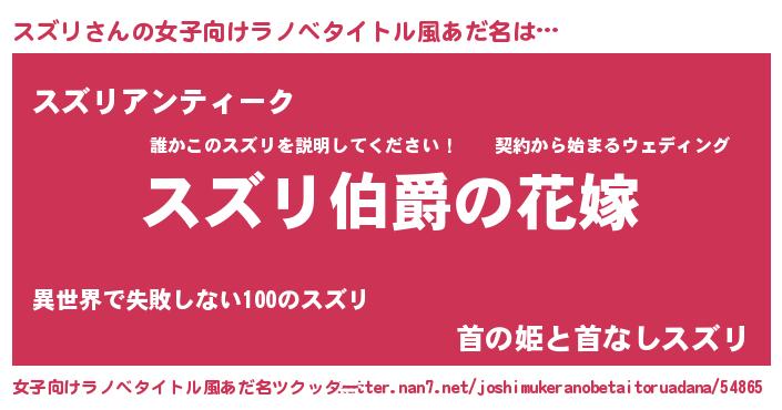 | 男性向けラノベタイトル風あだ名 | 『やはりスズリの青春ラブコメはまちがっている 』 |