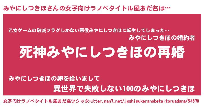 | 胡散臭い通販商品みたいなあだ名 | 『モンドセレクションを受賞した隕石のかけら…その名も「みやにしつきほ」』 |