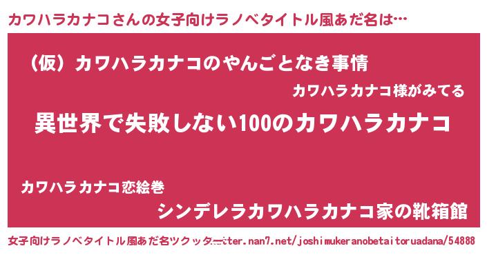 | 男性向けラノベタイトル風あだ名 | 『カワハラカナコという概念が存在しない退屈な世界 』 |