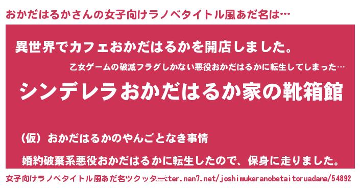 | 胡散臭い通販商品みたいなあだ名 | 『絶対に幸福をもたらす健康食品…その名も「おかだはるか」』 |