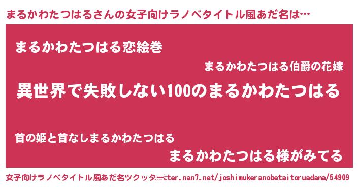 | ヘコむあだ名 | 『まるかわたつはる(小並感)』『まるぷりん』 |