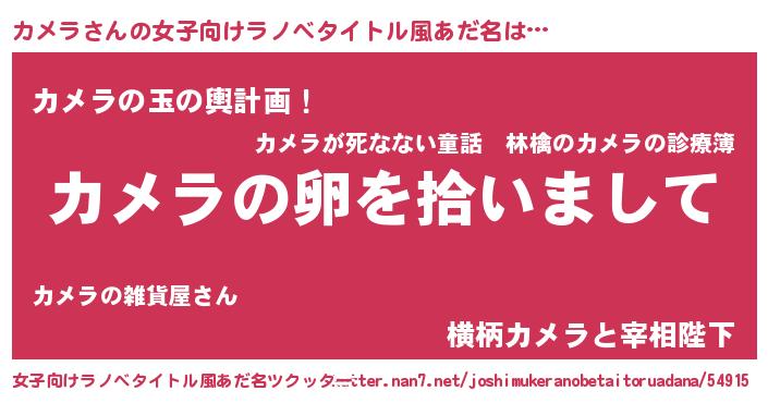 | 料理風あだ名 | 『ポテトとカメラのキッシュ☆』 |