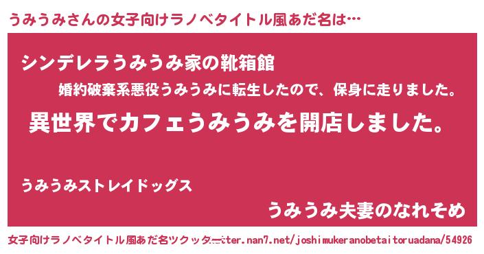 | 男性向けラノベタイトル風あだ名 | 『誰もが恐れるあのうみうみが、ぼくの専属メイドになるようです。』 |