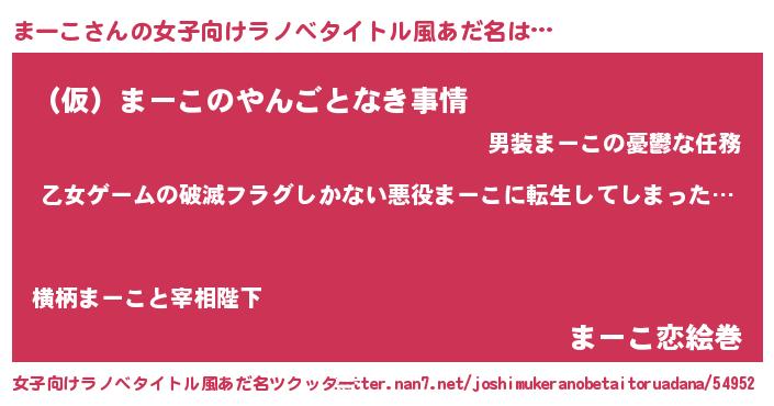 | 男性向けラノベタイトル風あだ名 | 『この素晴らしい世界にまーこを!』 |