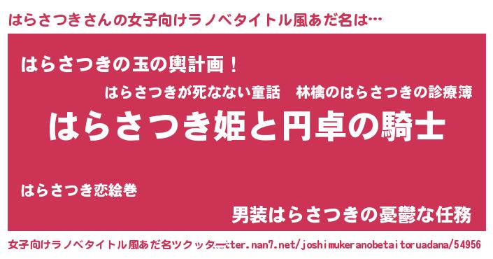 | 男性向けラノベタイトル風あだ名 | 『ハラサツキアートオンライン』 |