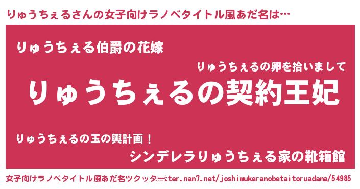 | 意味不明あだ名 | 『永久保存りゅうちぇる』 |