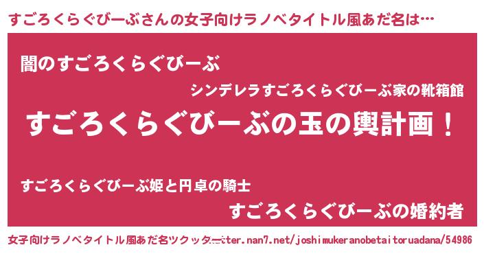 | 男性向けラノベタイトル風あだ名 | 『すごろくらぐびーぶ~年齢イコール彼女いない歴の魔法使い~』 |
