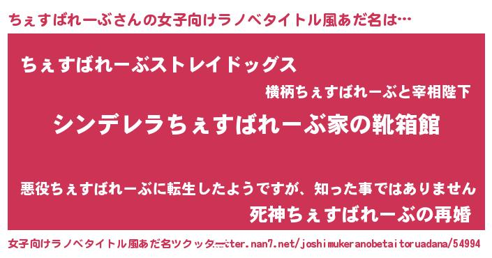| 胡散臭い通販商品みたいなあだ名 | 『ガンによく効く高麗人参…その名も「ちぇすばれーぶ」』 |