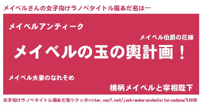 | 男性向けラノベタイトル風あだ名 | 『転生したらメイベルだった件』 |